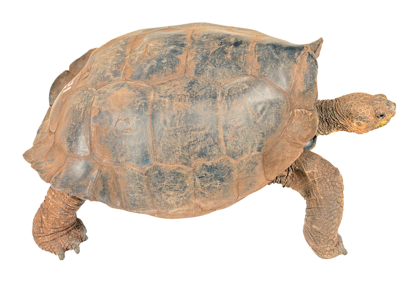 Recognition: ♂♂ 137.6 cm ♀♀ 88 cm. Chelonoidis niger was the only species of giant tortoise known to occur on Floreana Island. It was recognizable by its strongly saddlebacked carapace.